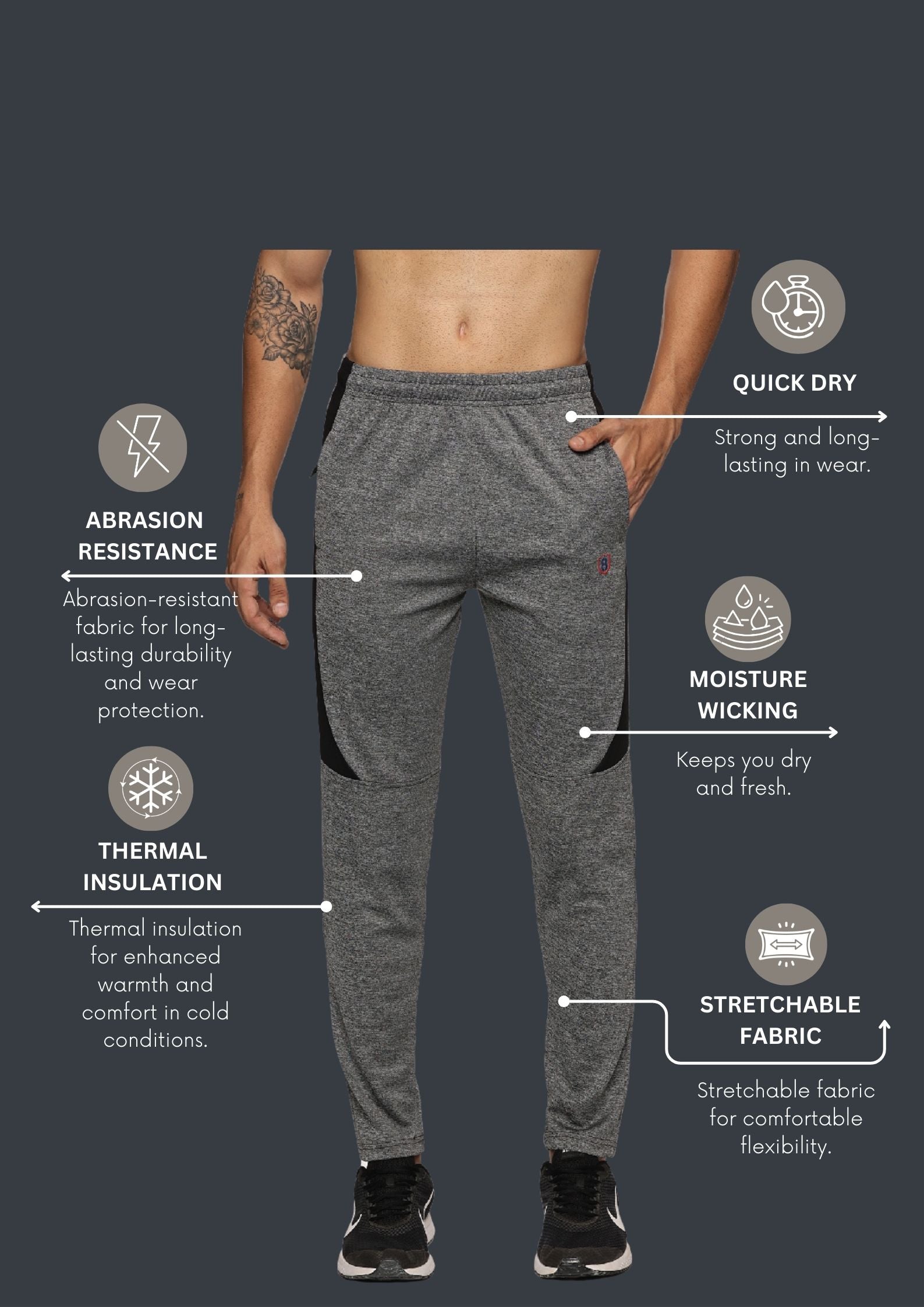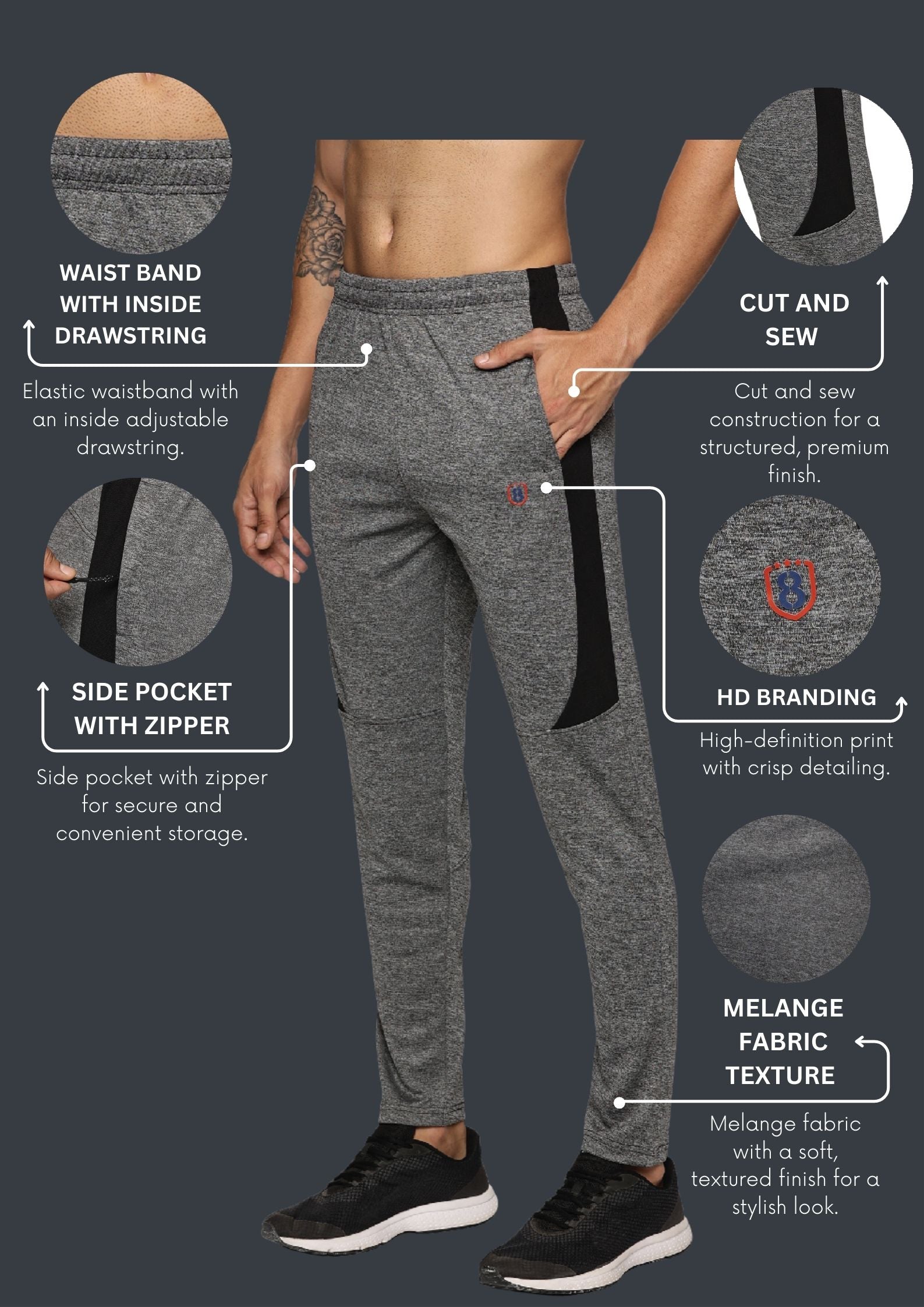 Grey and black zipper pocket track pants – ideal for gym and casual wear