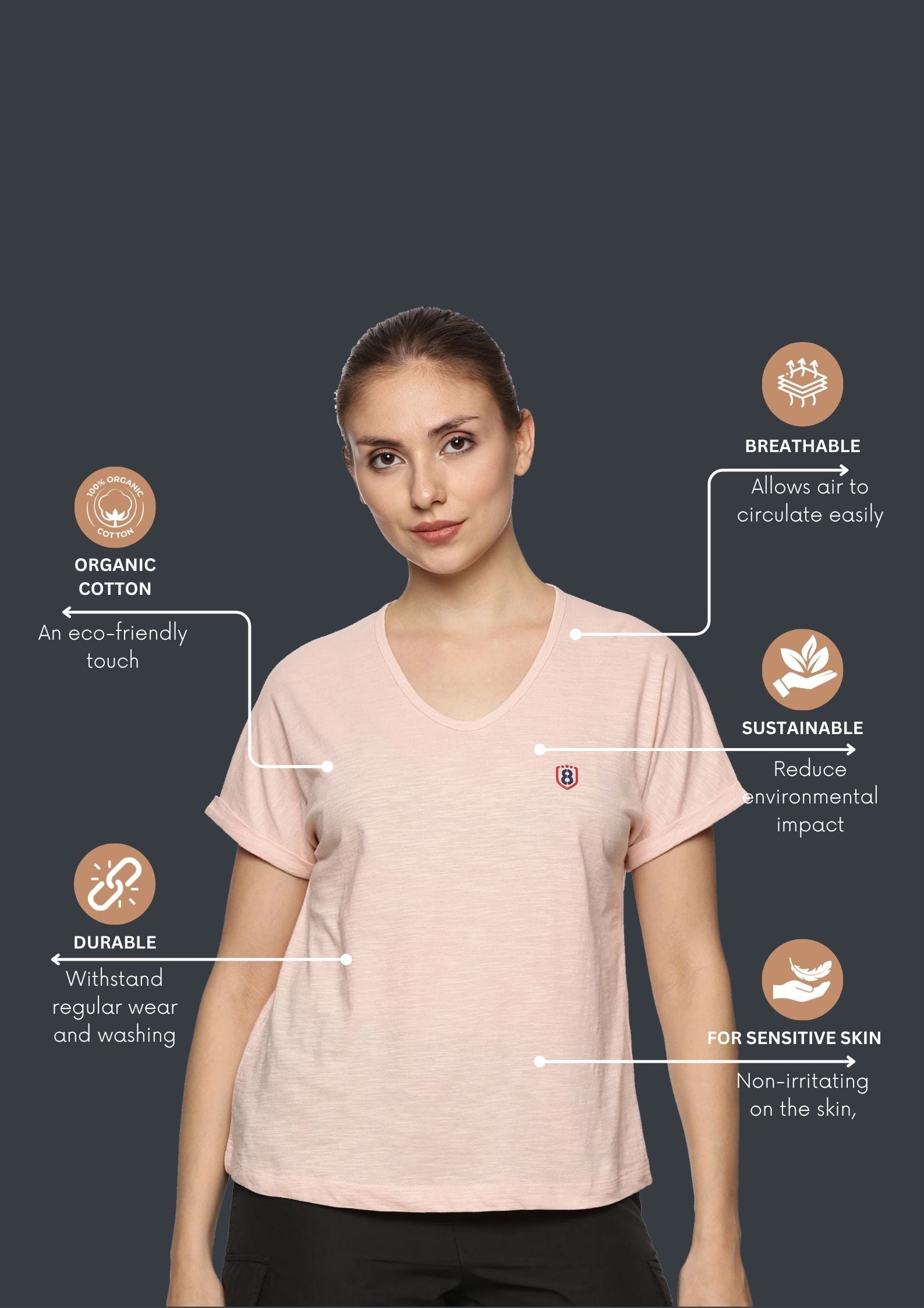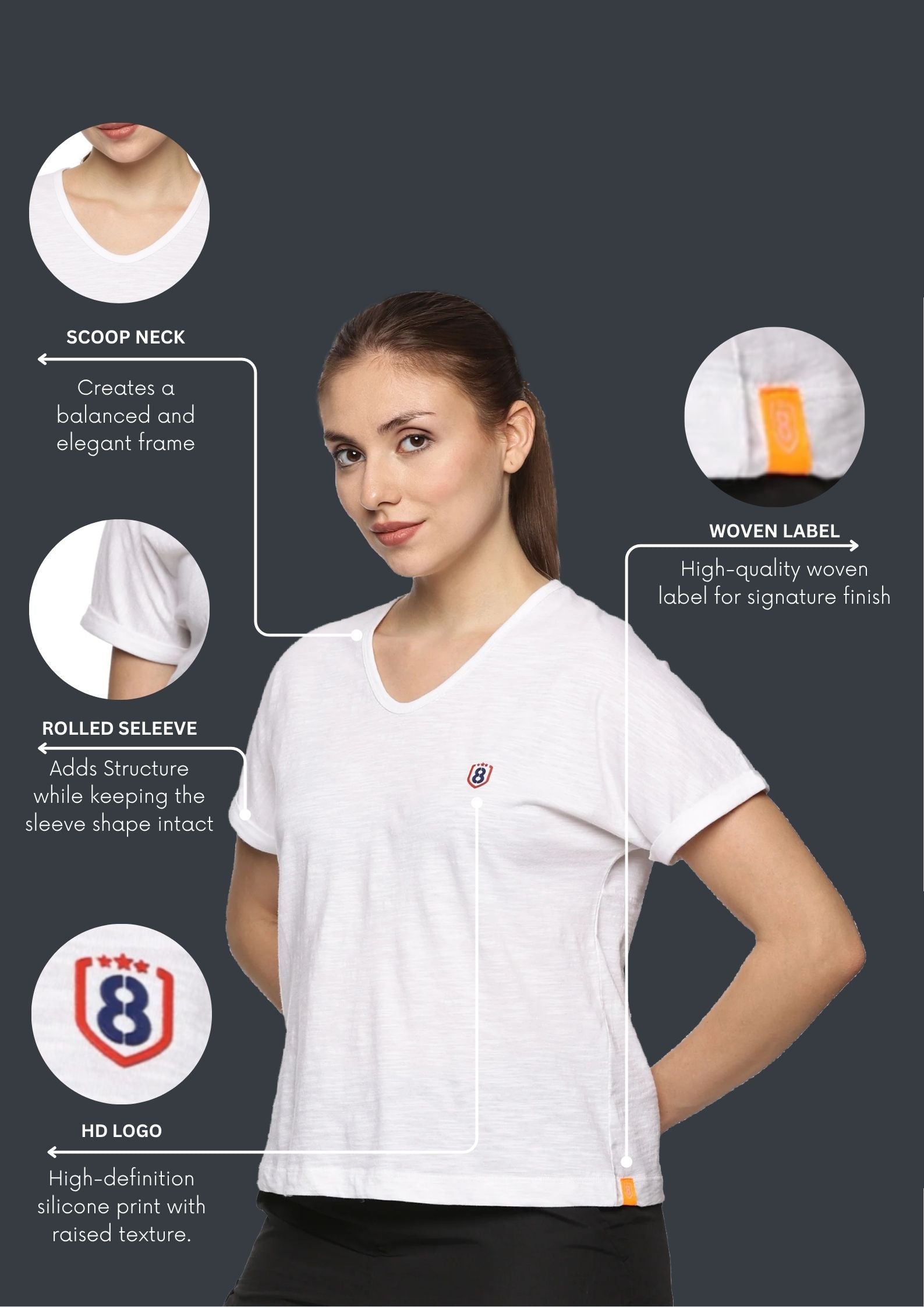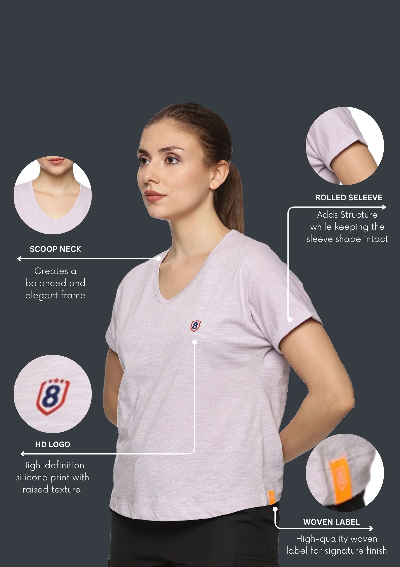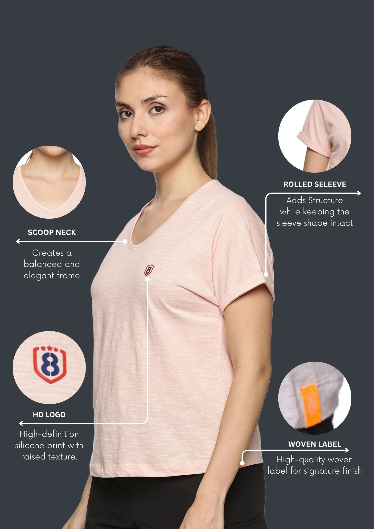 Women Solid Outdoor training T shirt. It has U neck and Short sleeves