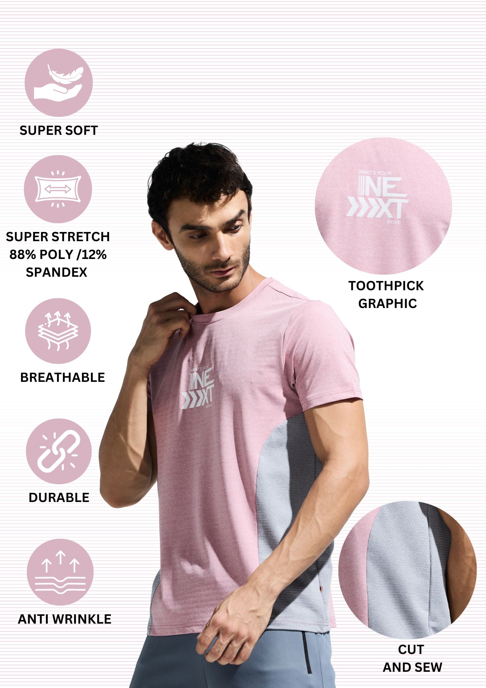 Elevate your fashion game with our Men's round neck Contrast Cut & Sew Graphic Tee, a modern garment crafted to turn heads. Composed of 88% polyester and 12% spandex (175 GSM), this shirt offers both comfort and a flattering fit. The distinctive contrast cut and sew design adds a fresh twist to the classic tee silhouette, ensuring you're noticed in any setting.