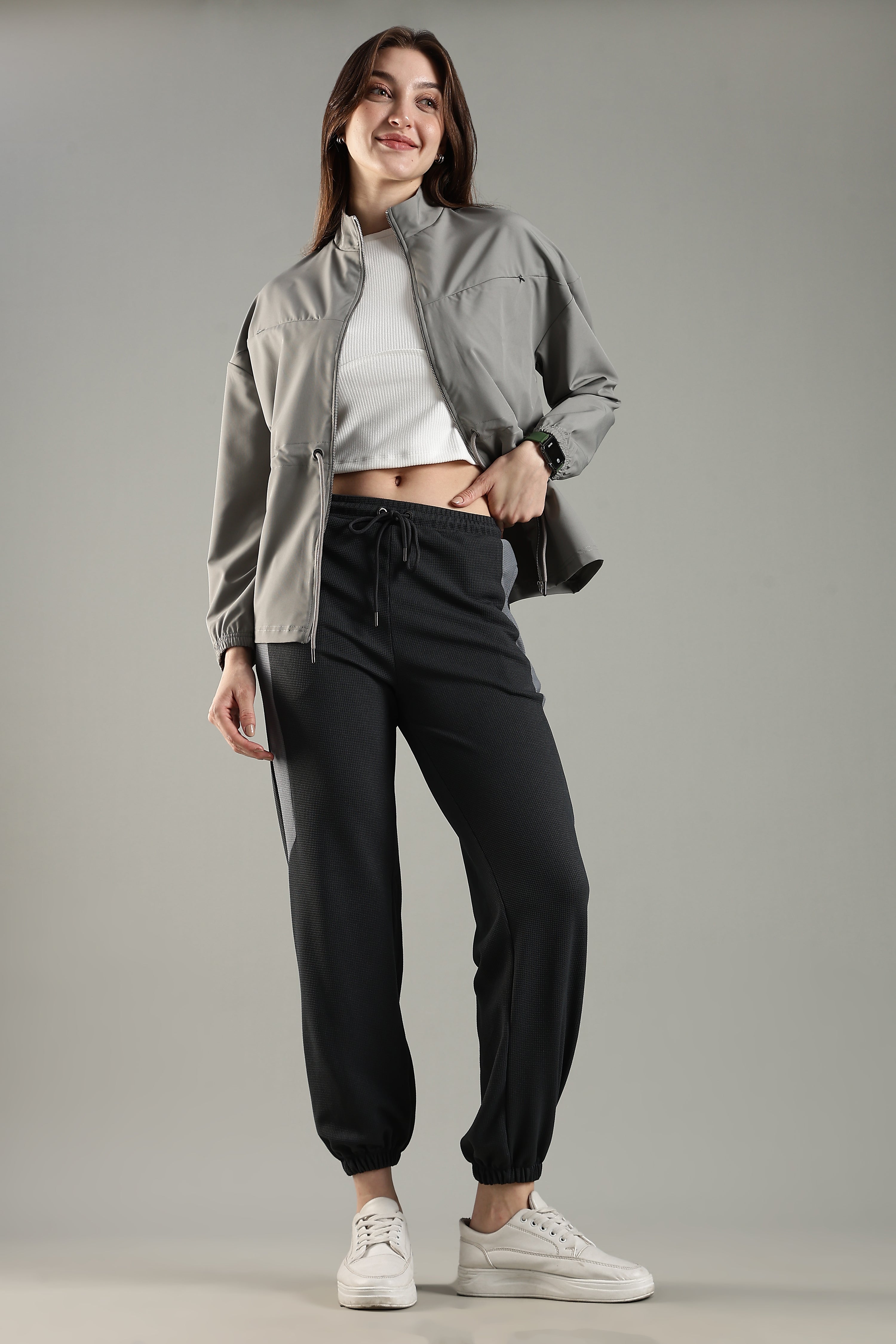 Women's Woven Jacket with High V-Neck & Zipper Opening