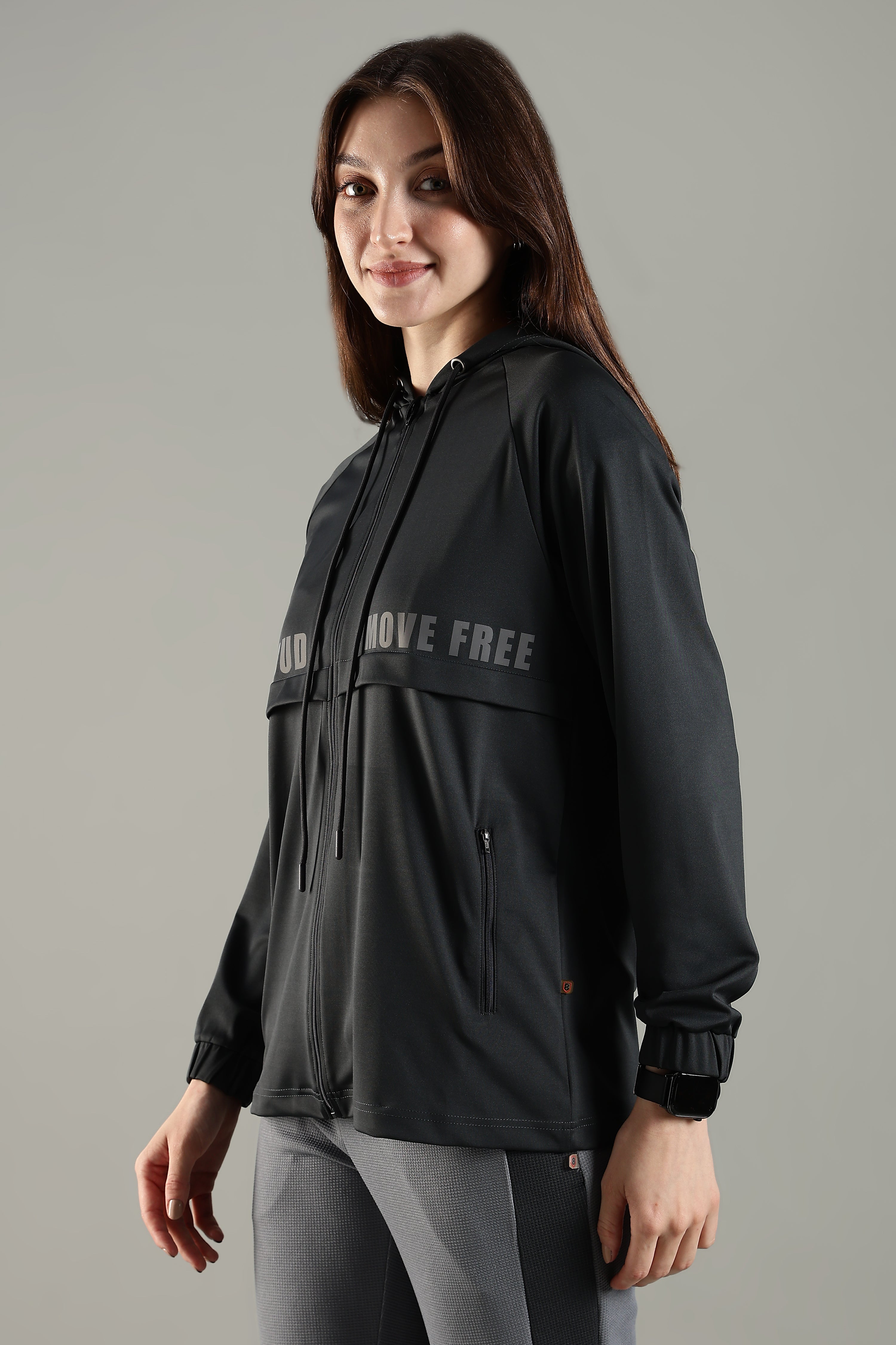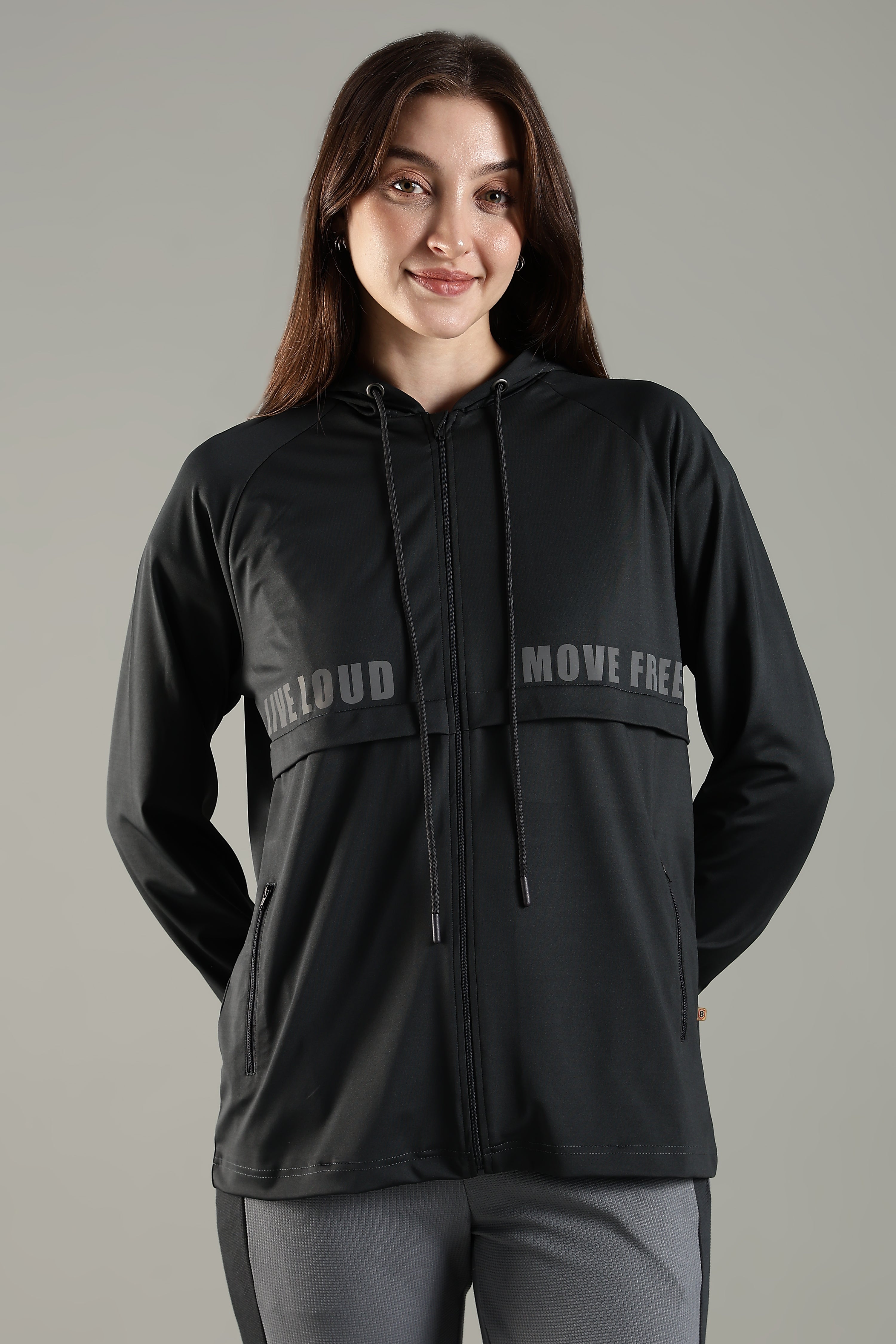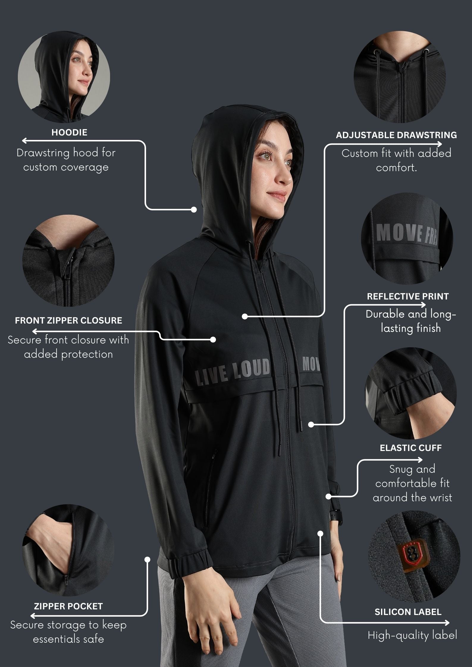 Women's Raglan Sleeve Hoodie with High V-Neck Collar & Zipper Opening